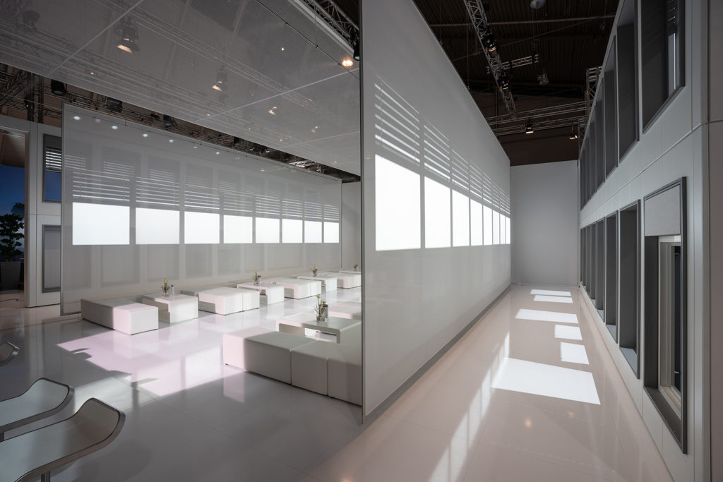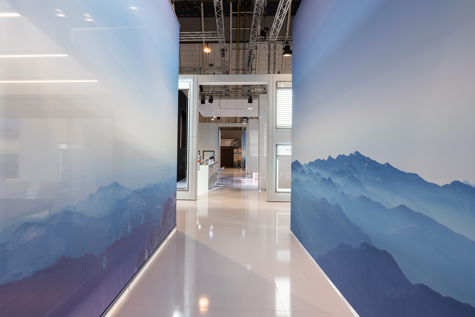 - Wandbespannungen aus bedruckten Netzgeweben und bedruckten opaken Textilien